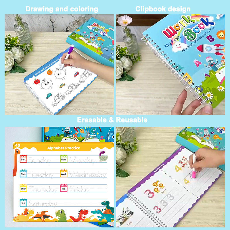Cahier de traçage magique à rainures pour enfants, réutilisable, effaçable à sec, pour l'apprentissage de l'alphabet préscolaire