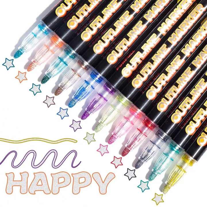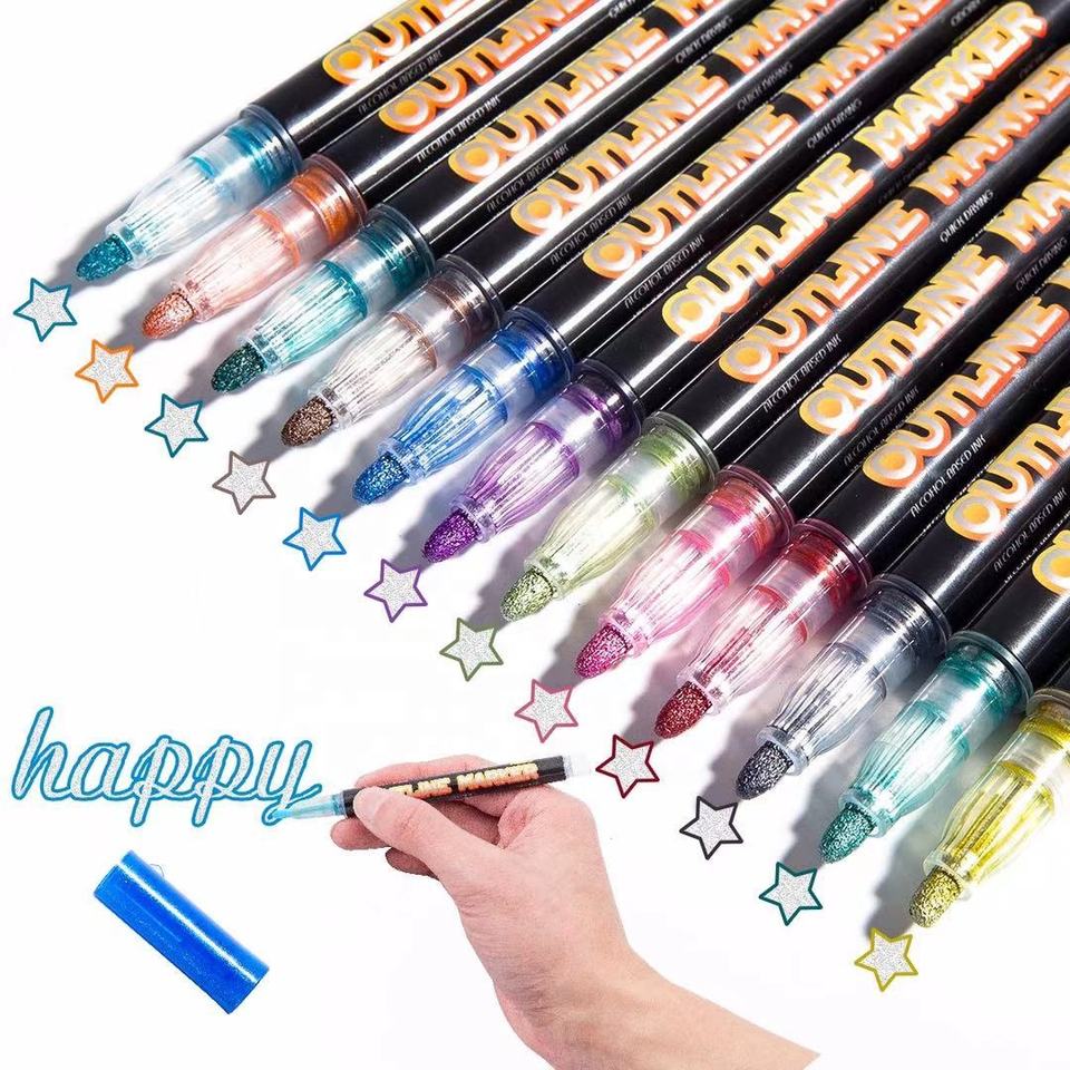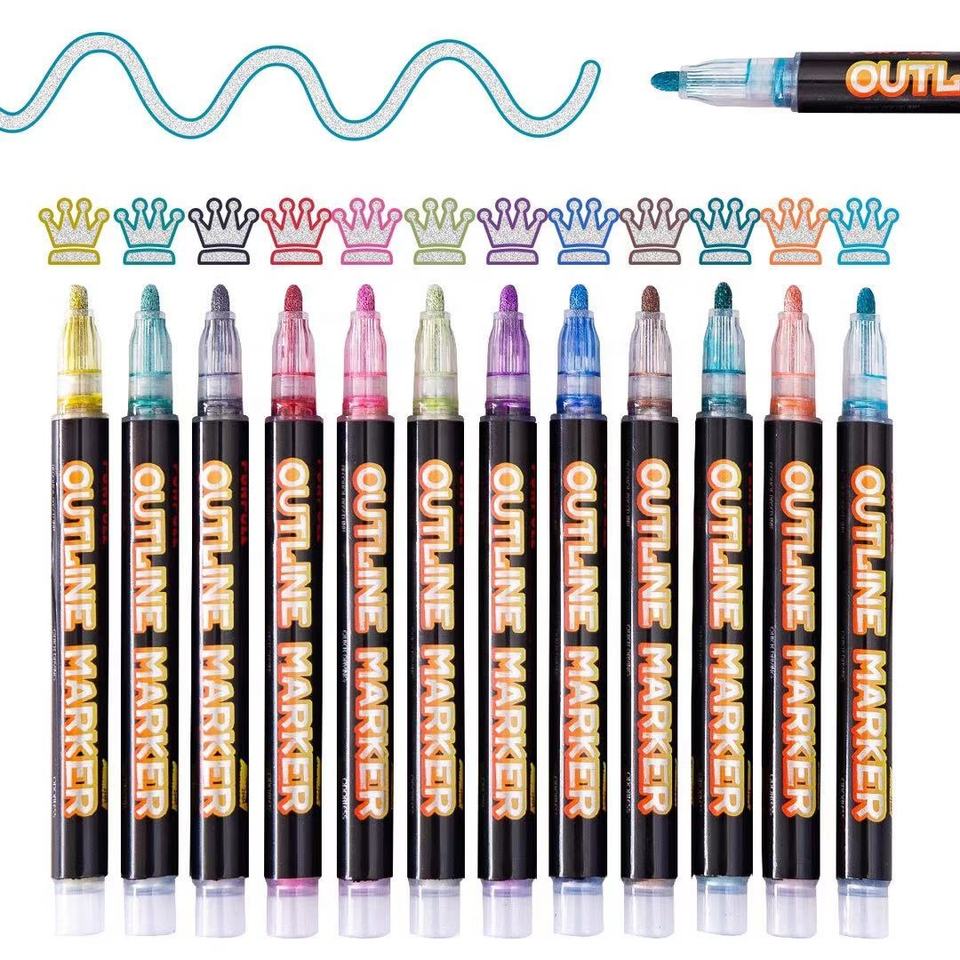 Ensemble de marqueurs à contour métallique, ensemble de marqueurs à double contour, pack de 12 couleurs