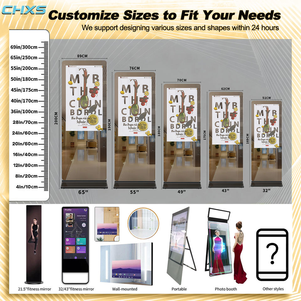 Totem Publicitaire Vertical Tactile Intelligent Écran Interactif LCD 4K 32 43 55 65 Pouces Type Miroir Magique sur Pied