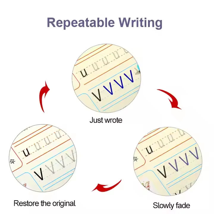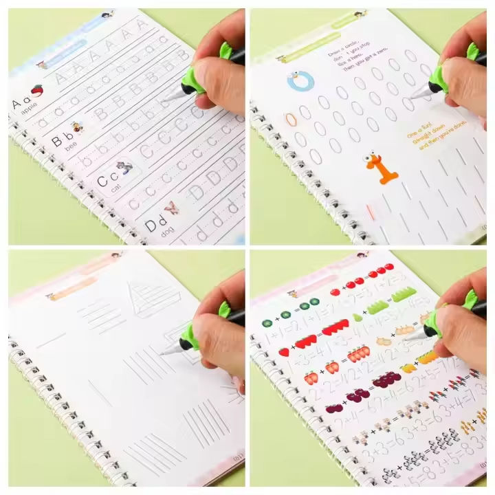 Cahier de Pratique Magique 4 Pièces, Carnet d'Écriture Anglaise pour Enfants, Livre d'Impression Calligraphique, Entraînement à la Calligraphie pour Enfant