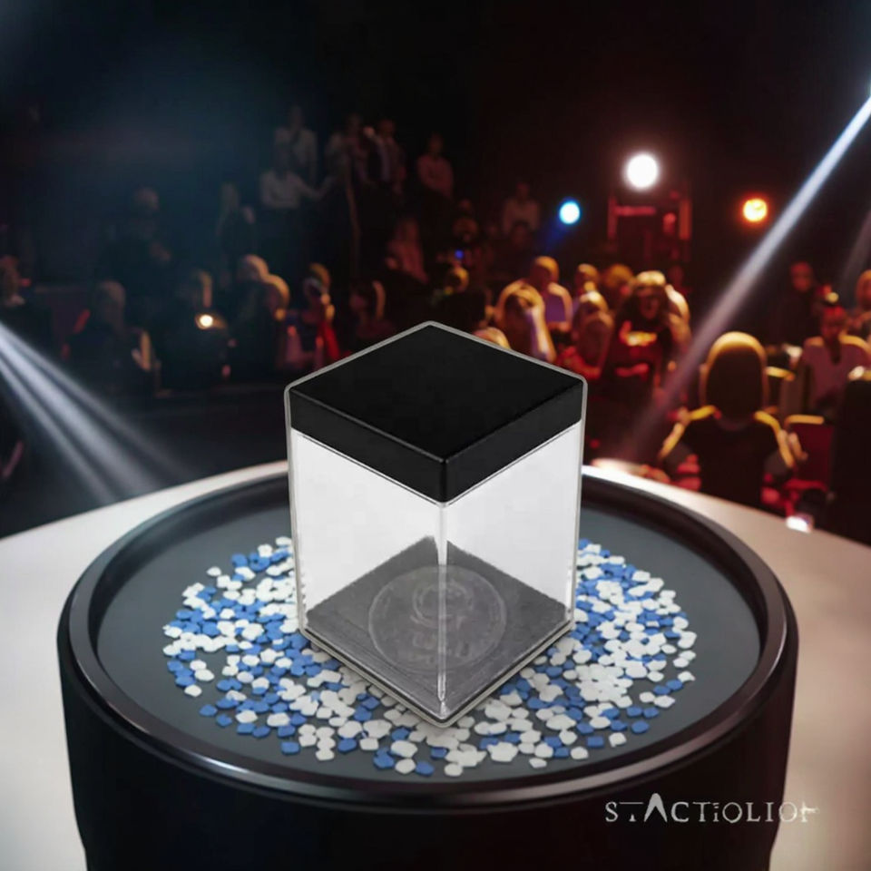 Accessoires de magie, pièce de monnaie qui apparaît dans la boîte, tour de magie avec instructions, tour de magie amusant, boîte en cristal pour enfants, jouet pour adultes