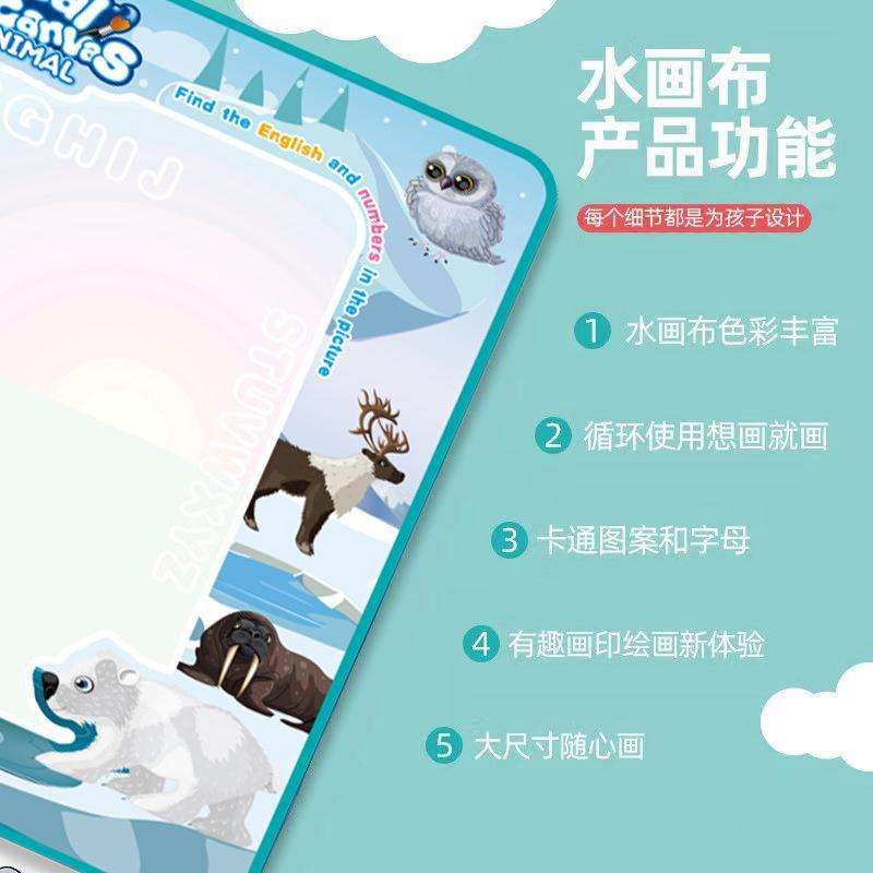 Tapis d'apprentissage magique en toile à l'eau avec motifs d'animaux de dessin animé et de vie marine, extra-large, réutilisable