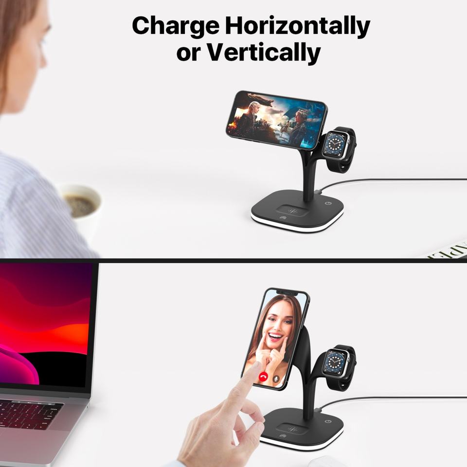 Chargeur sans fil magique 3 en 1, station de charge sans fil 15W pour plusieurs appareils, station de charge rapide pour iPhone 12 13