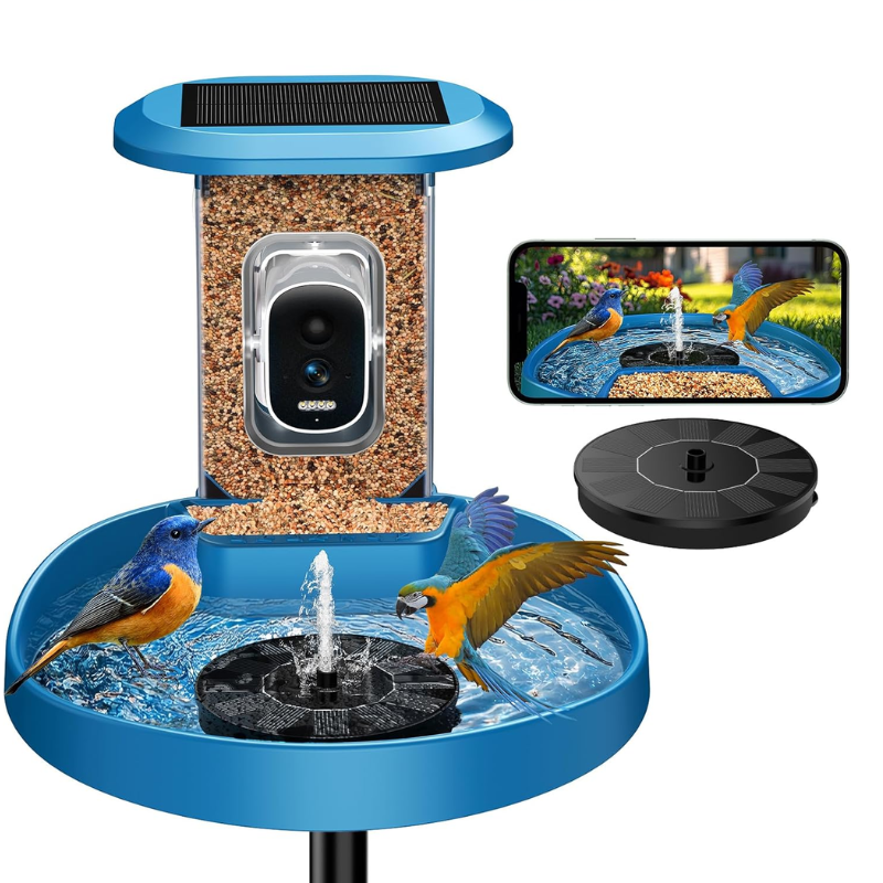 MagicDots Caméra de bain d'oiseaux solaire écologique avec recherche visuelle IA, mangeoire à reconnaissance intelligente, 10 000 oiseaux, 2K HD en temps réel
