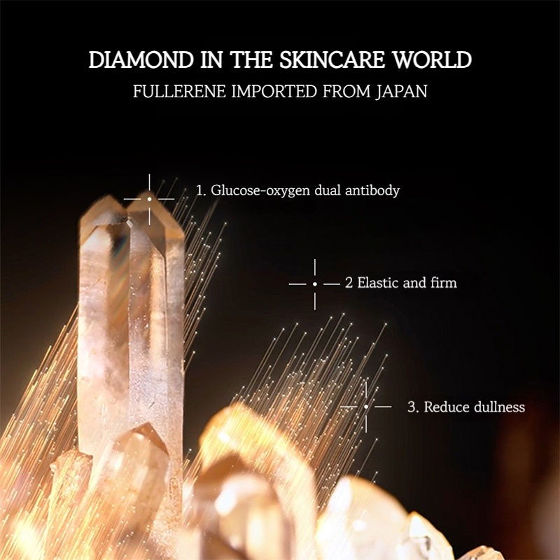 CI 19140 (jaune citron), CI 15985 (jaune coucher de soleil), Caprylate de glycéryle, parfum, Polyvinylpyrrolidone, fullerène, Sève de bouleau, tripeptide-5 de palmitoyl, Extrait de nénuphar blanc, extrait de truffe blanche, Biosaccharide gomme-1, extrait d'écorce de saule blanc,, L hexapeptide-8, extrait de racine de gentiana, Cordyceps sinensis extrait,, Hyaluronate de potassium,, Hyaluronate hydrolysé de sodium, Niacinamide, diméthicone, Crosspolymère de hyaluronate de sodium, Hydroxyéthylcellulose, gomme de xanthane, Acide hyaluronique, hyaluronate acétylé de sodium, Huile de ricin hydrogénée polysorbate 20, PEG-40,, Acide hyaluronique hydrolysé,, Acide hyaluronique de chlorure d'hydroxypropyltrimonium,, Extrait de Chondrus crispus,, Glucose, hyaluronate de sodium,Ingrédient