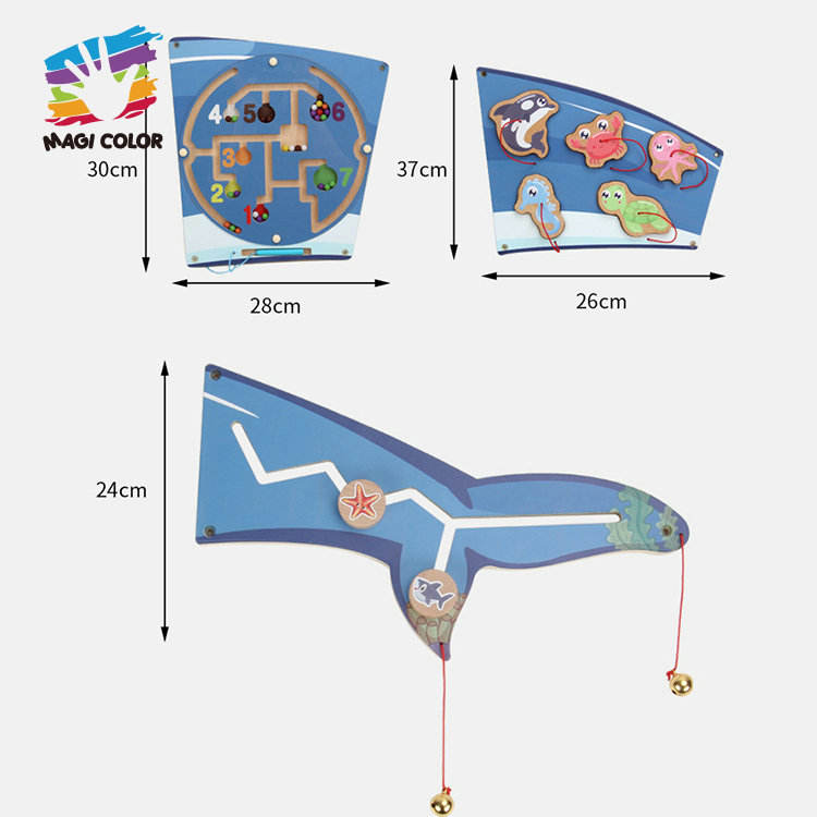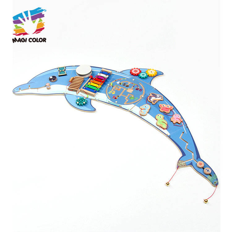 Mur d'activités interactif Magicolor Dolphin Discovery, centre en bois, labyrinthe marin, engrenages rotatifs, sons de xylophone pour les enfants de 5 à 7 ans