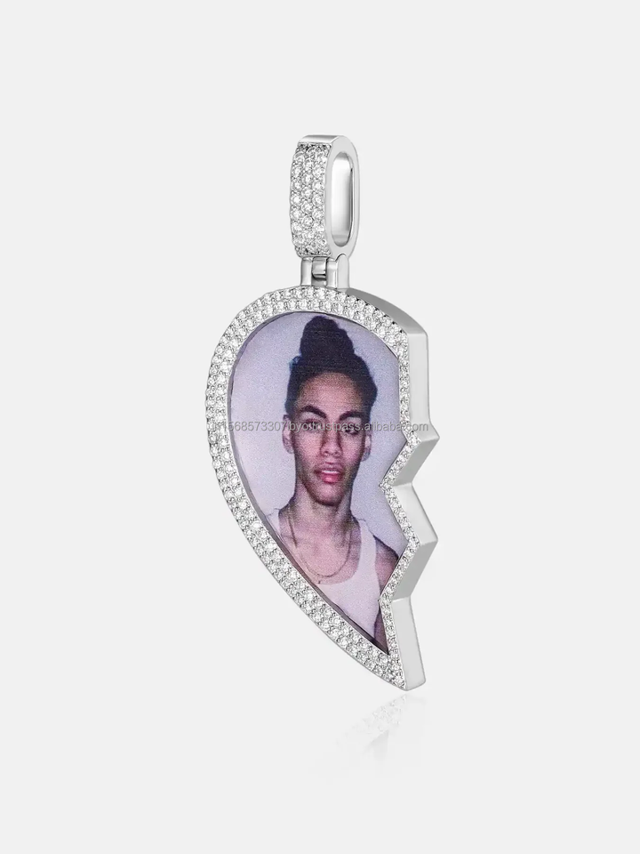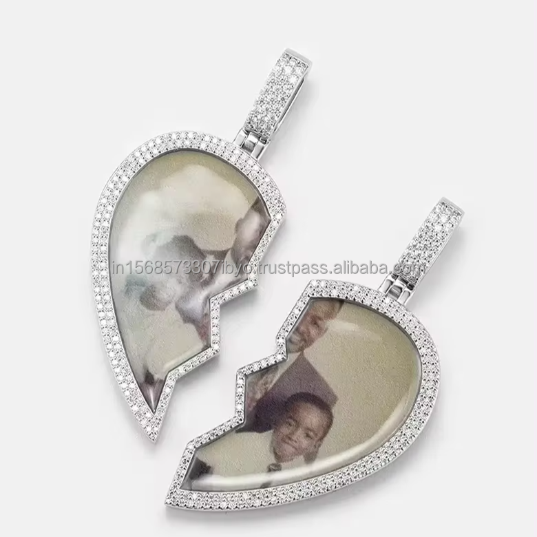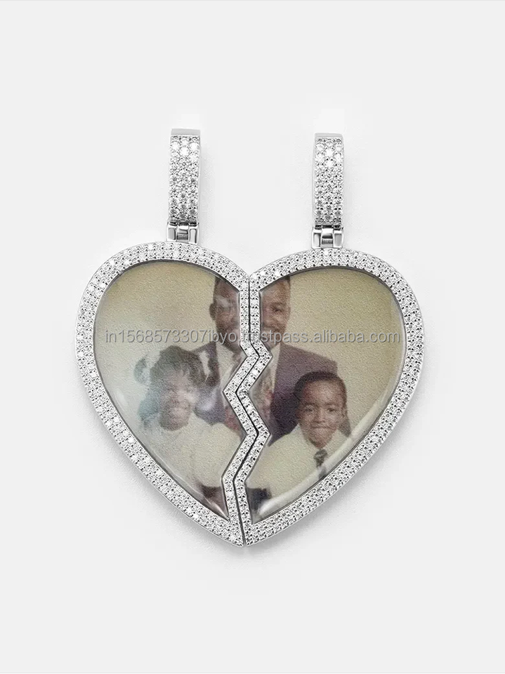 Aimant Coeur Brisé Pendentif Image Personnalisée 2 Pièces Collier Magnétique avec Photo Collier Mémorial Hommes Et Femmes