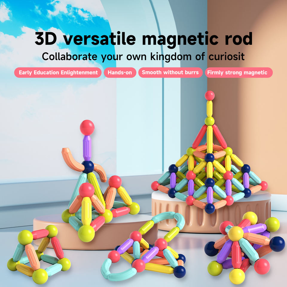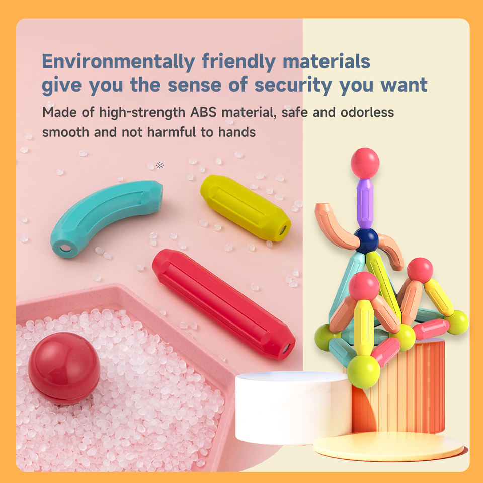 Jeu de boules et de tiges magnétiques de blocs de construction couleurs vives différentes tailles formes incurvées jouet éducatif pour enfants