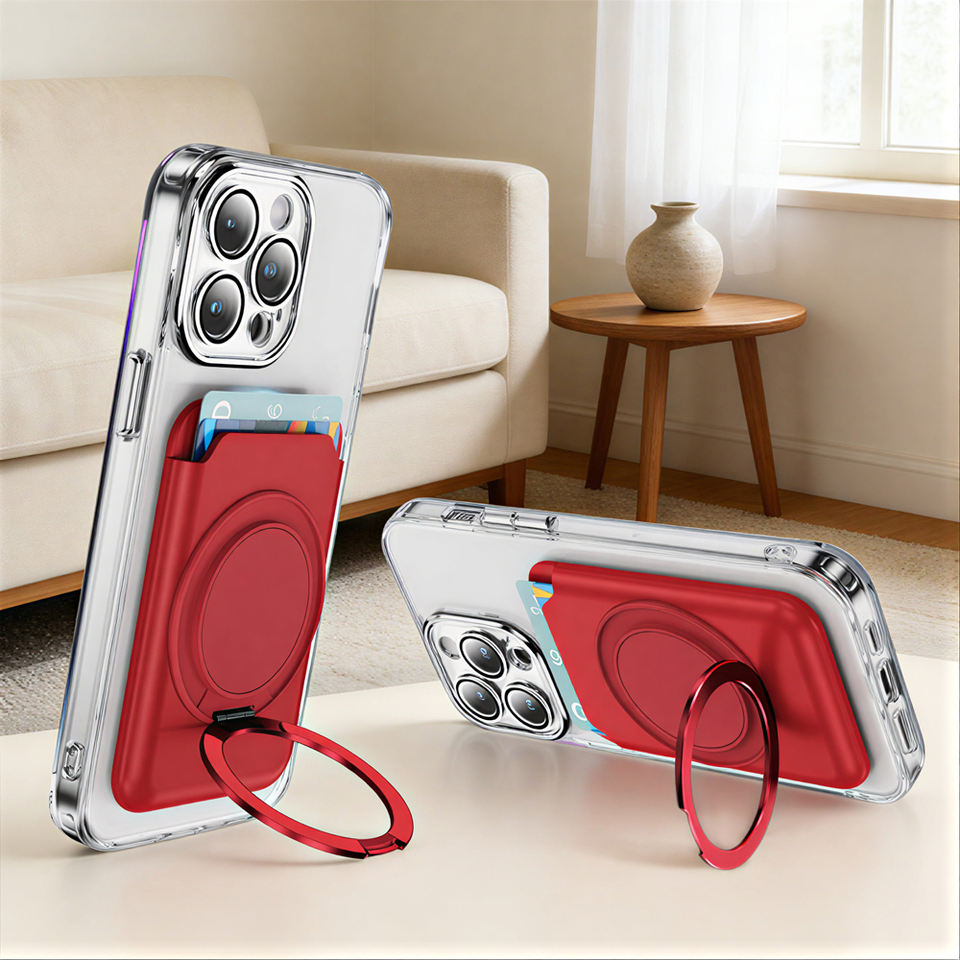 Portefeuille porte-cartes magnétique avec support rotatif caché, accessoire de téléphone 2-en-1 pour un rangement sécurisé des cartes et une visualisation mains libres