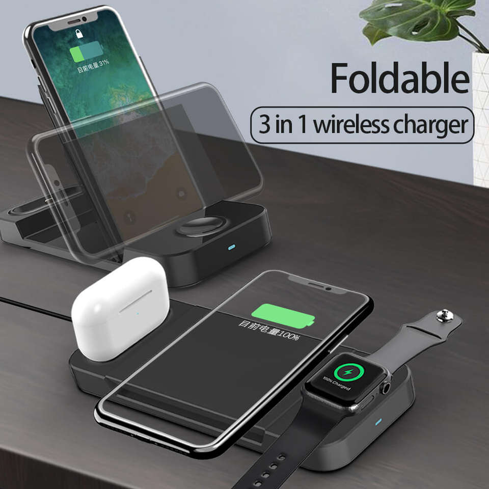 Chargeur magnétique sans fil pliable 3 en 1 avec support magnétique pour téléphone Iphone16 Iwatch airpods 15W Charge rapide