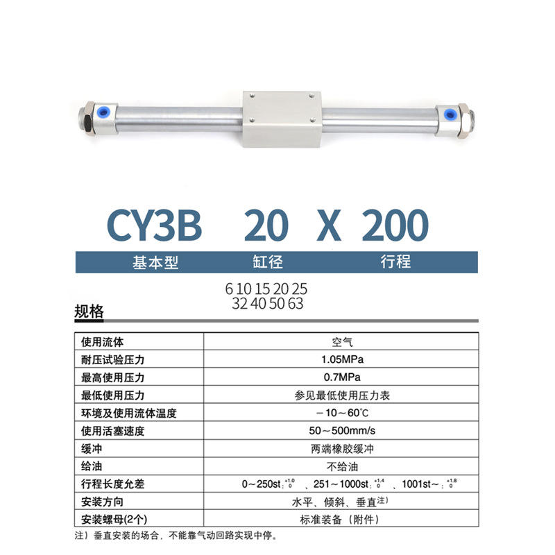 Cylindre pneumatique sans tige à accouplement magnétique CY3B/CY1B15/20/25/32/40/50/63X100*300-400 1200 Neuf Utilisé pour les applications mécaniques