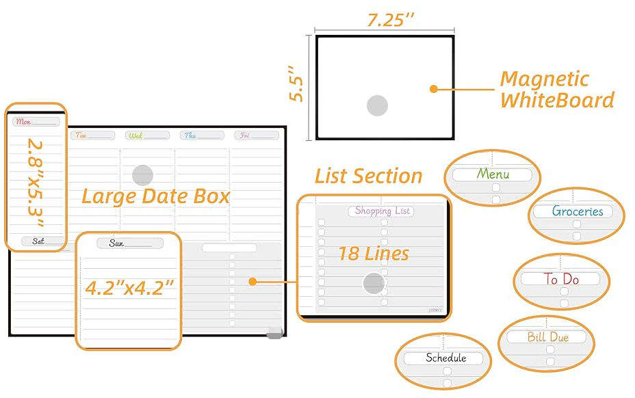 Calendrier mensuel magnétique effaçable à sec, montage sans adhésif, tableau blanc hebdomadaire, parfait pour la liste des tâches ménagiques en famille