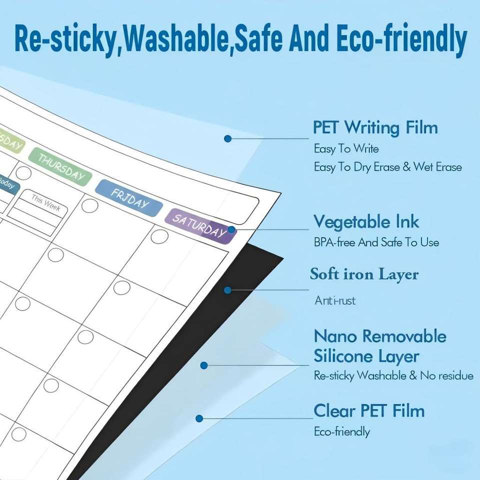 Nom du produit:Calendrier mensuel, tableau blanc hebdomadaire non adhésif, tableau des tâches familiales