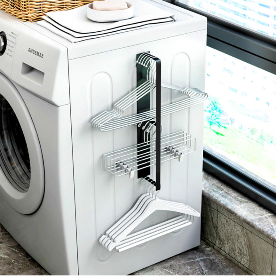 Organisateur de cintres magnétique pour machine à laver, support mural en métal, séchoir non pliable, multifonction, revêtement en poudre, sans rangement