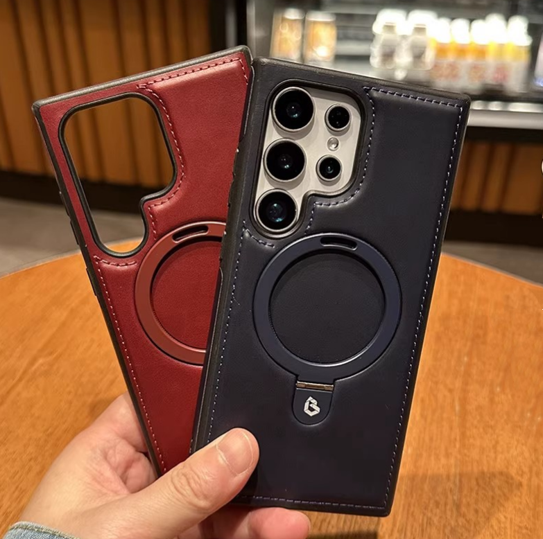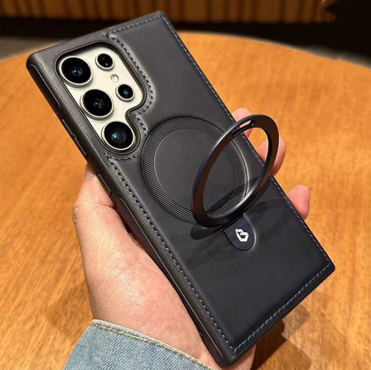 Étui de téléphone en cuir magnétique avec support d'anneau pour Samsung S26 S26 Ultra, étui de téléphone mobile professionnel sans fil pour Iphone 15 Pro Max