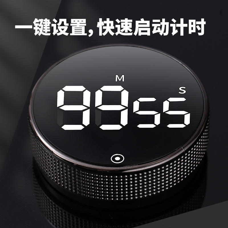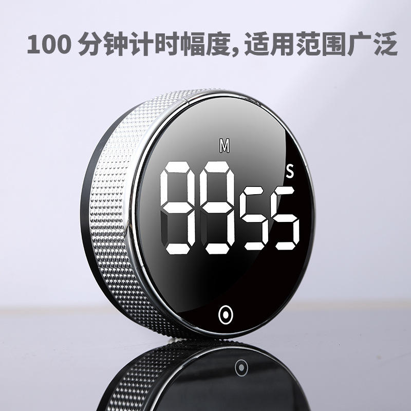 Minuteur de cuisine magnétique à LED, compte à rebours de 60 minutes, rond, noir et argenté, chronographe décoratif, rappel de temps