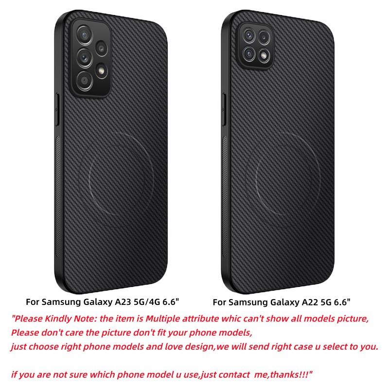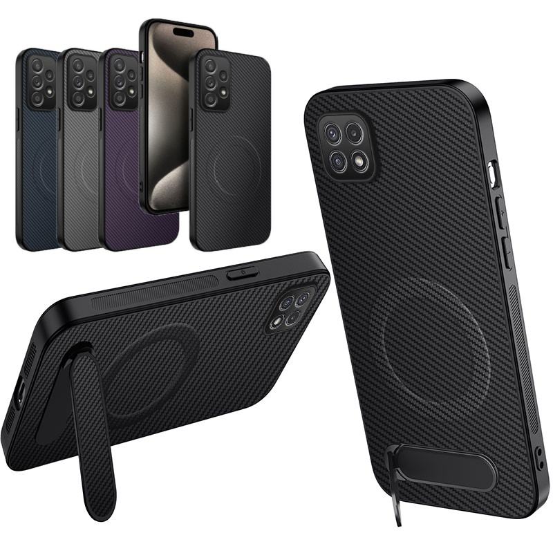 Étui arrière en cuir texturé en fibre de carbone magnétique mat avec support pour Samsung Galaxy A71 A51 A23 A22, compatible avec la recharge sans fil
