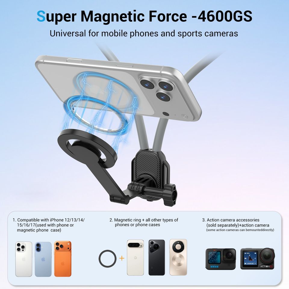 Support magnétique pour téléphone portable universel, accessoire étanche, hauteur réglable, sangle anti-vibration, connexion, respectueux de la peau