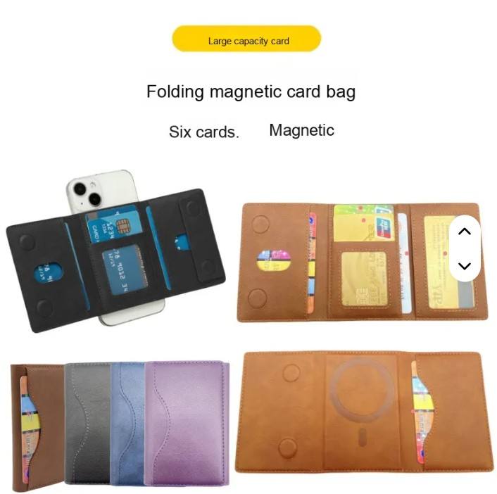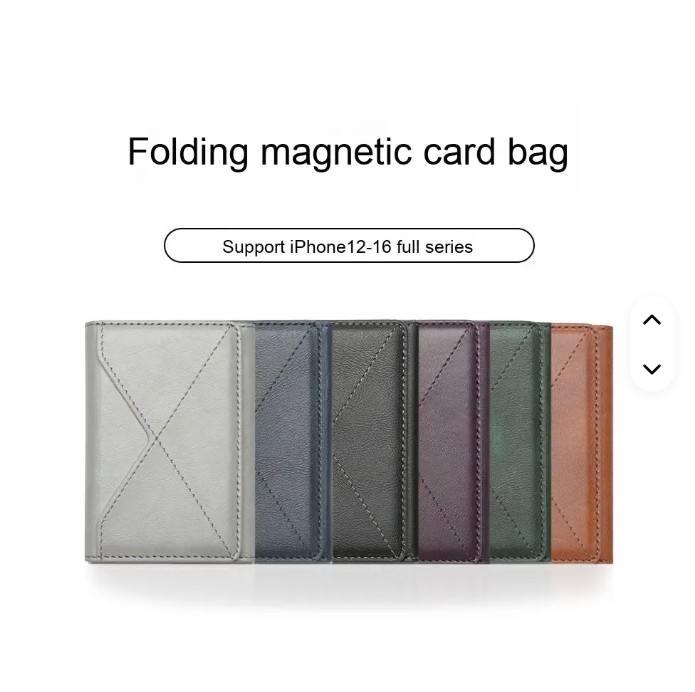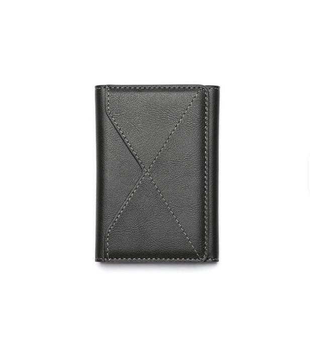 Porte-cartes magnétique antivol Apple à triple pliage, portefeuille en cuir unisexe pour affaires, grande capacité, longueur courte, doublure en PU