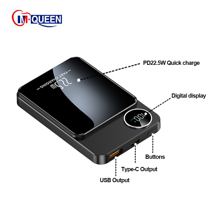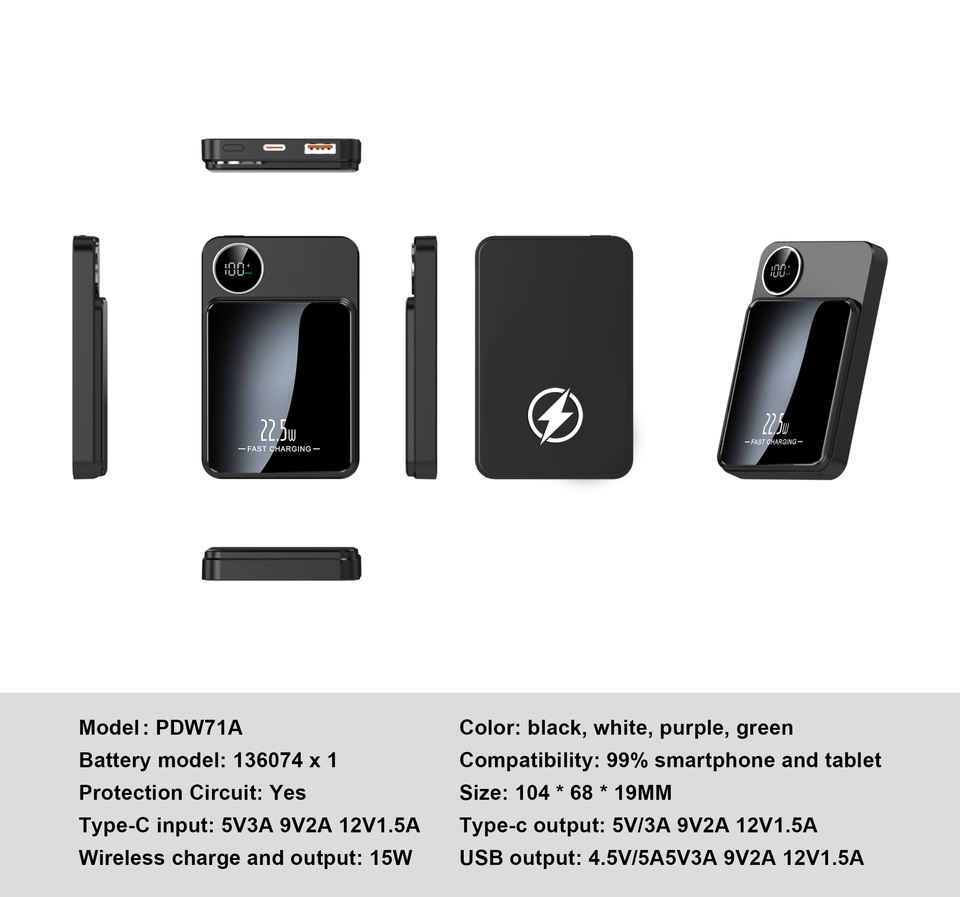 Chargeur magnétique PD 20W à charge rapide, chargeur super rapide 22,5W, chargeur sans fil magnétique portable 15W, batterie externe 10000mAh 5000MAH
