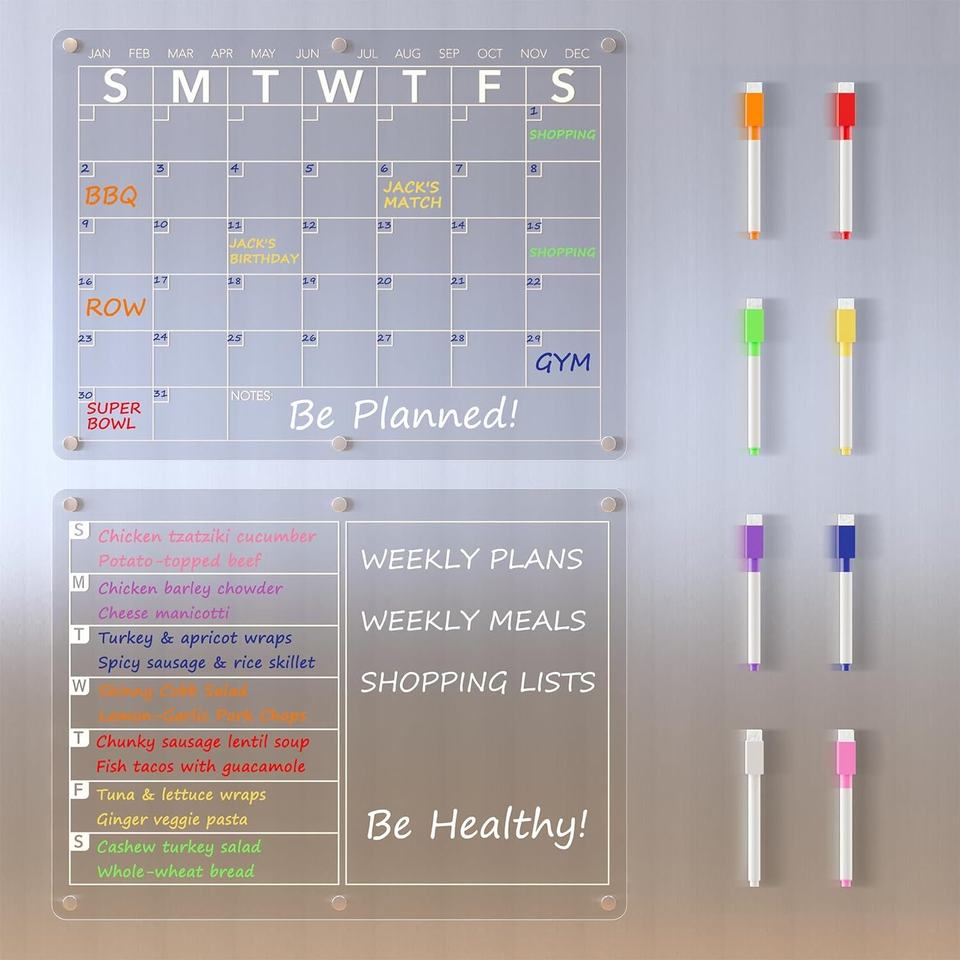 Autocollant magnétique pour réfrigérateur, aimant puissant, calendrier en acrylique transparent, tableau blanc effaçable à sec