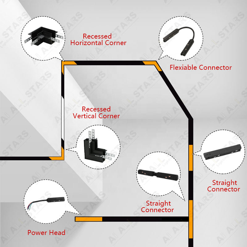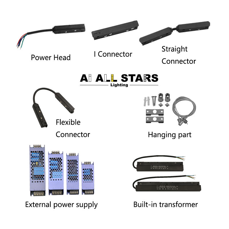 Accessoires pour système d'éclairage sur rail magnétique, spots encastrés sur rail, alimentation LED 48V, transformateur