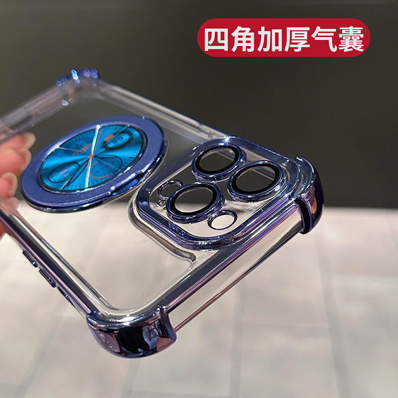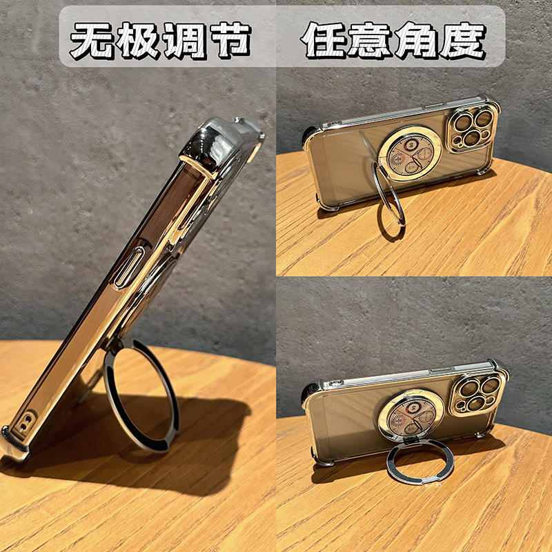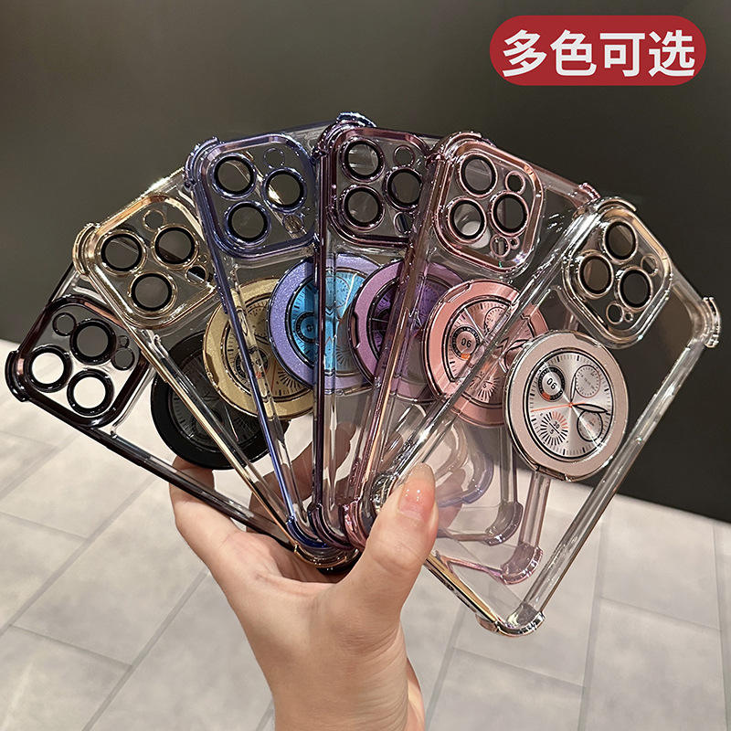 Modèle de montre magnétique Rotary Finger Ring Bracket Mirror Four Corner Drop-proof Mobile Phone Case For 15promax/14