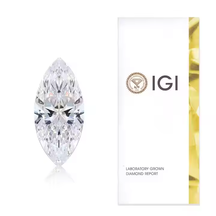 Magnifique diamant de laboratoire CVD de forme marquise, couleur F, pureté VS2, taille élite, brillant, certifié IGI, bijoux de luxe personnalisés RUHA PRP036