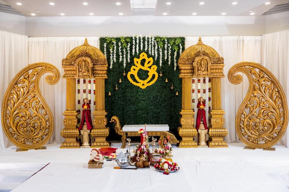 Magnifique cadre blanc pour coulisses de mariage Panneaux impressionnants pour réception de mariage Configuration exceptionnelle du cadre arrière en fibre de mariage