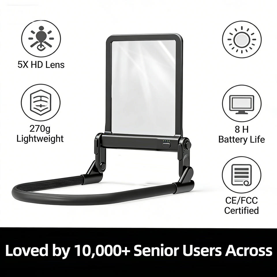 Loupe avec couvercle anti-poussière, base robuste, pieds antidérapants, support stable, matériau durable, design moderne