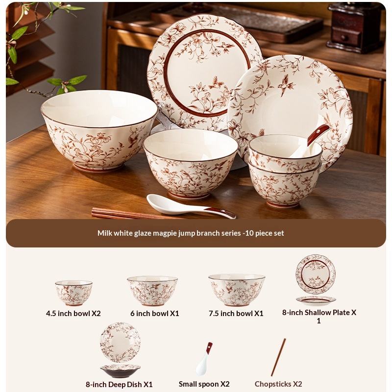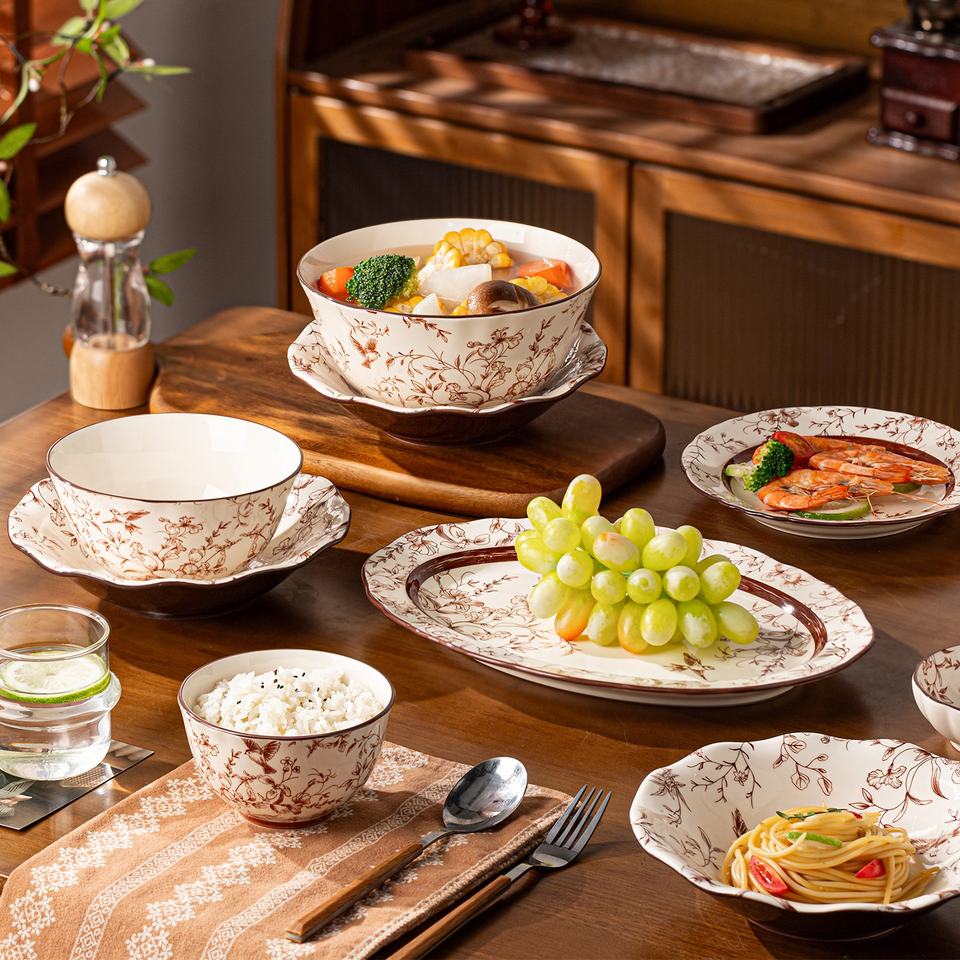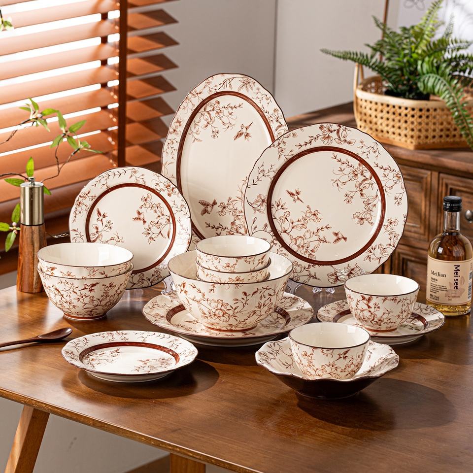 Service de table en céramique motif Épervier sur branche, compatible micro-ondes, bols et assiettes, style pastoral, vaisselle de maison, cadeau de pendaison de crémaillère et de mariage