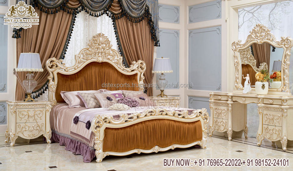 Maharaja Style Golden Finish Round Bed & Bedroom SetProduct name