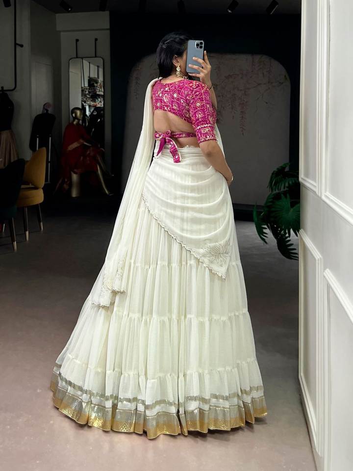 Ensemble Lehenga Choli en soie premium, style Maharashtrien, magnifique couleur blanche, dentelle brodée, pour femmes ou filles, occasion spéciale