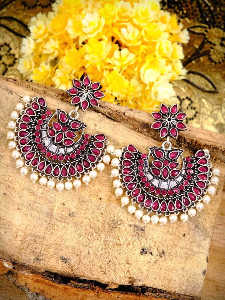 Product Name:Mahi Chandbali - Oxidised Silver Kundan Studded Pearl Drop Earrings
