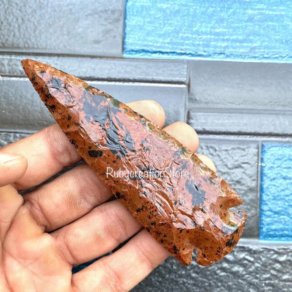 Pointes de flèche en obsidienne acajou taillées à la main, pointes de lance en cristal naturel, pointes de flèche en pierres précieuses pour collectionneurs et exposition