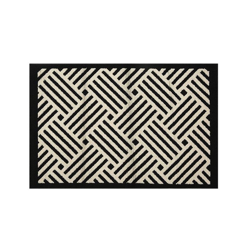 Tapis de porte géométrique rectangulaire antidérapant MaiMai pour usage domestique, motif rayé noir et crème, tapis d'entrée