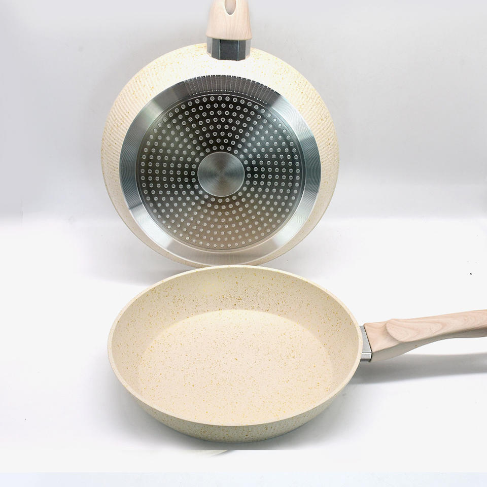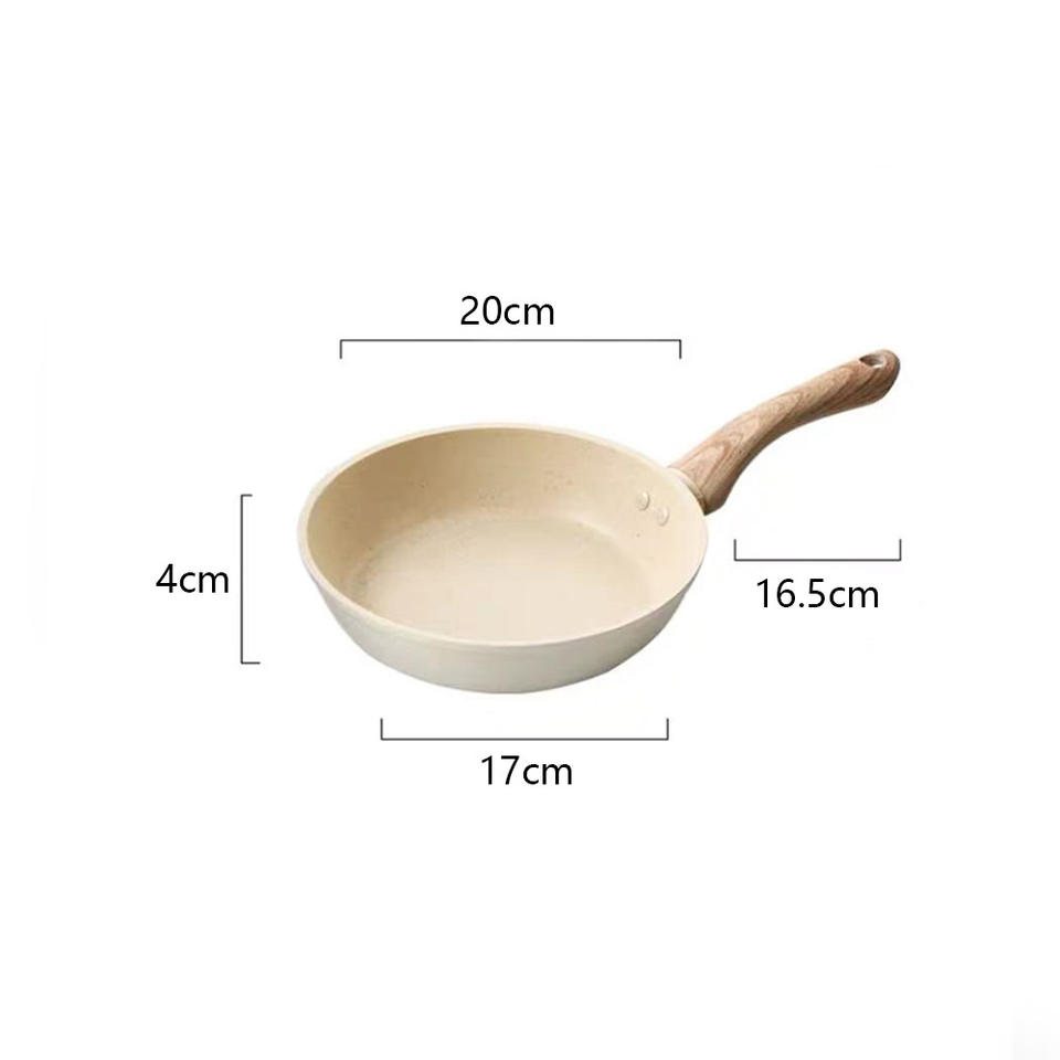 Ensemble de poêles en pierre Maifan beige avec manche en bois, antiadhésives, rondes, multi-tailles, universelles pour tous les types de cuisinières, ustensiles de cuisine pour la maison