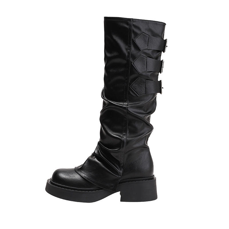 Bottes Maillard noires imperméables à fermeture éclair haute, au-dessus du genou, pour femme, nouvelle collection automne-hiver 2024, style rétro britannique à semelle épaisse