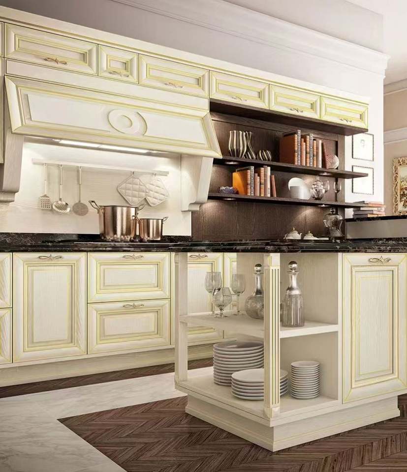 Majestic Armoire de cuisine assemblée en bois massif de frêne blanc antique avec charme classique