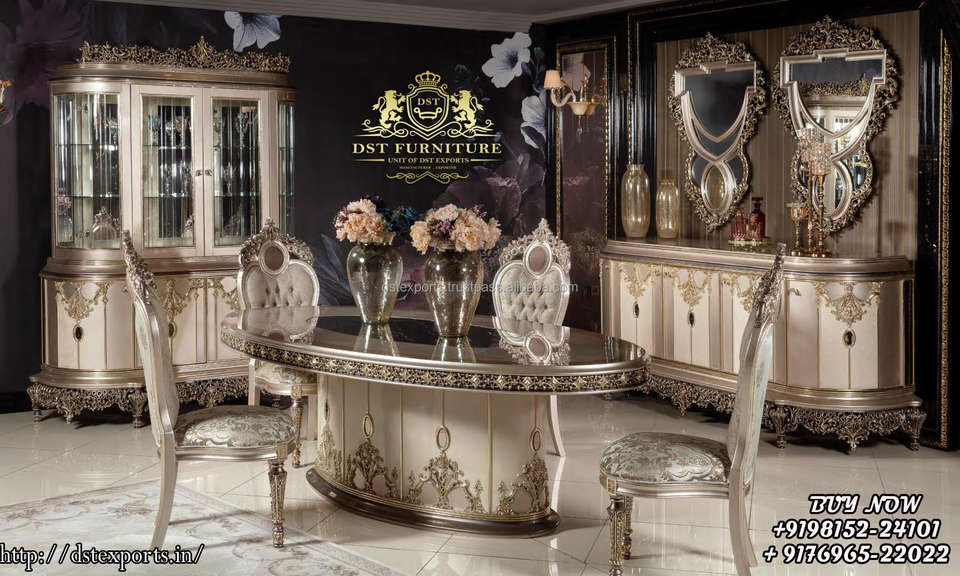 Bens — Set de Table avec finition noire métallique, Style européen, Table à manger classique et moderne avec haute brillance