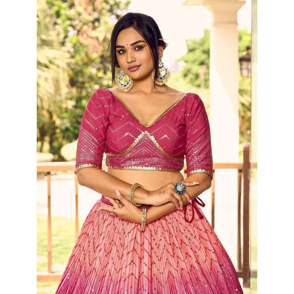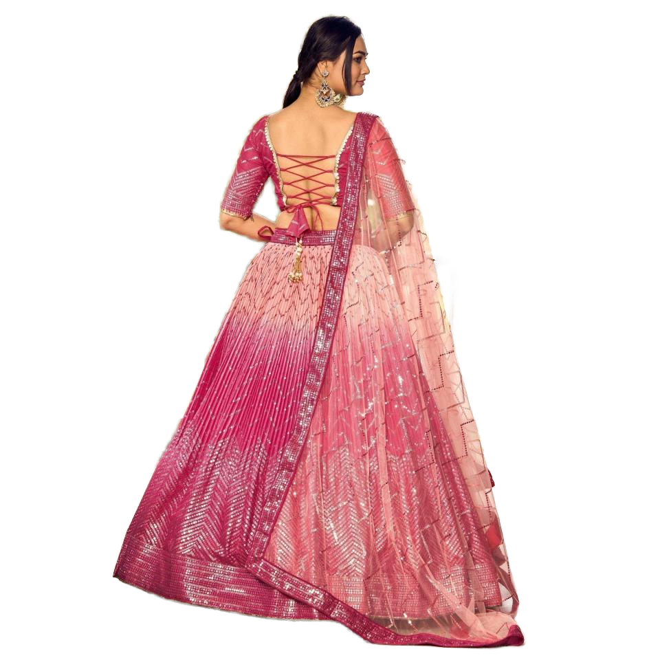 Majestic Pink Sequins Chinon Wedding Apparel Lehenga Choli with Dupatta