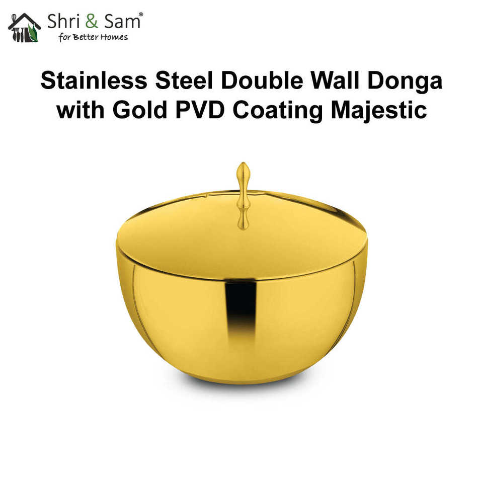 Majestic Premium Double Wall Stainless Steel Donga with Gold PVD Coating High Quality Bowls
