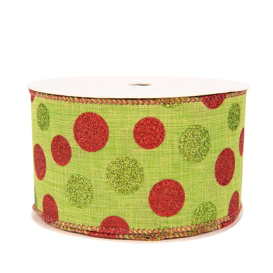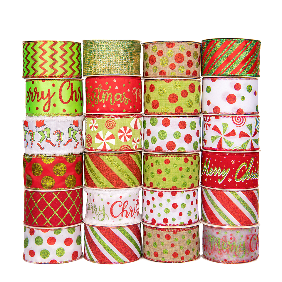 Rubans de Noël transfrontaliers Maju – Grinch aux cheveux verts magnifiques, en satin polyester gaufré imprimé rouge et vert