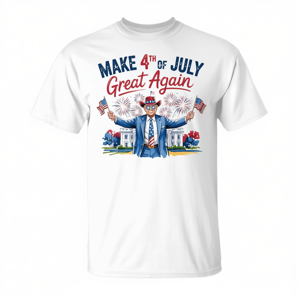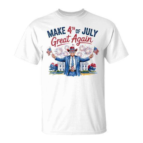 T-shirt pour femme « Make 4Th Of July Great Again » – Design patriotique pour la fête de l'Indépendance, manches courtes, col rond, sérigraphie pour adulte