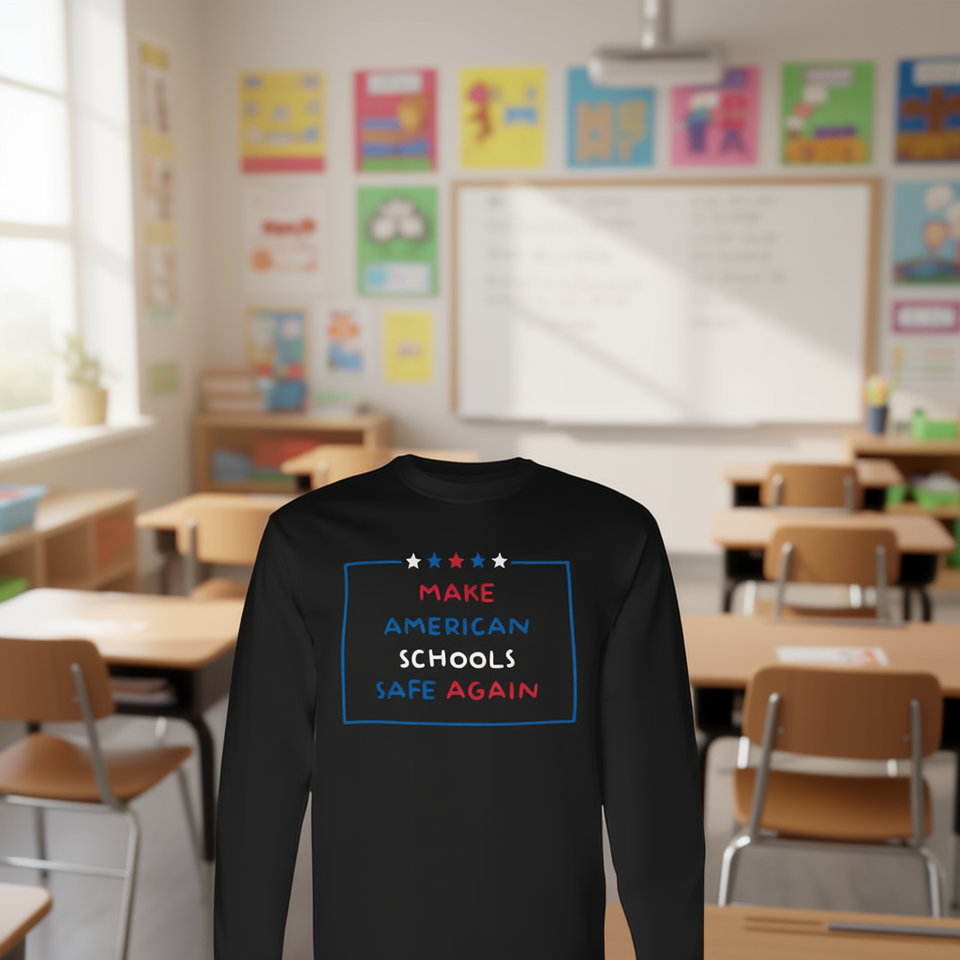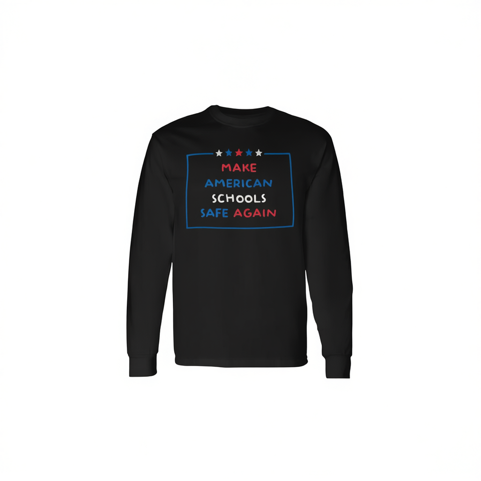 T-shirt à manches longues unisexe pour adultes, col rond, avec impression sérigraphique « Faire des écoles américaines à nouveau sûres », pour la rentrée scolaire et la remise des diplômes
