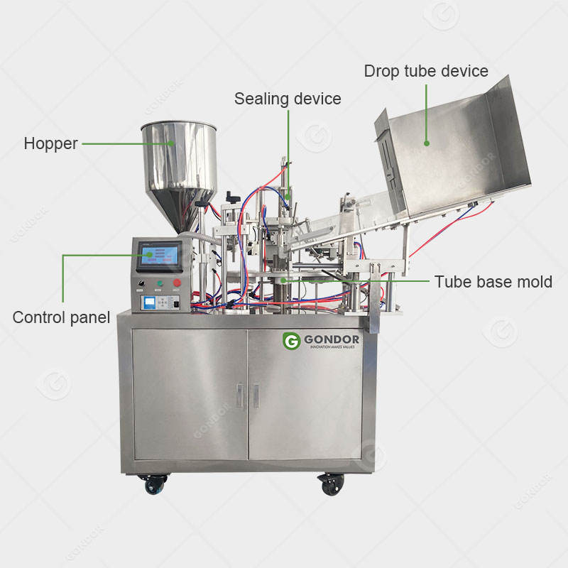 Machine de remplissage et de scellage pour tubes souples en aluminium, plastique, pansements, dentifrice et coloration capillaire, avec fonction de test de prix pour la fabrication