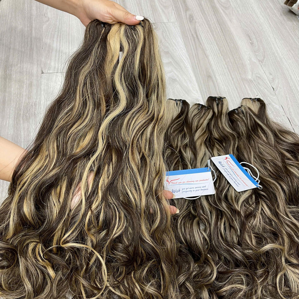Créez votre style : Cheveux vierges vietnamiens non traités, tissage naturel ondulé, idéal pour la vente en gros
