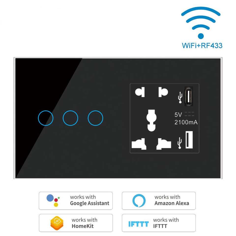 Interrupteur mural tactile MakeGood Smart Life, panneau en cristal blanc et noir, 1 gang, 10A, 110-240V