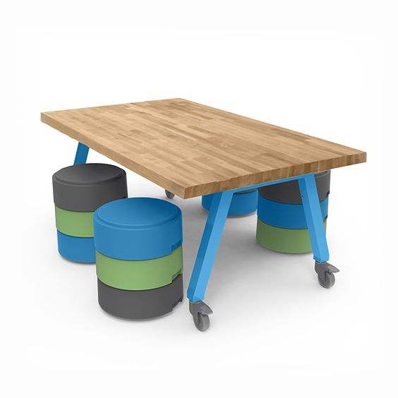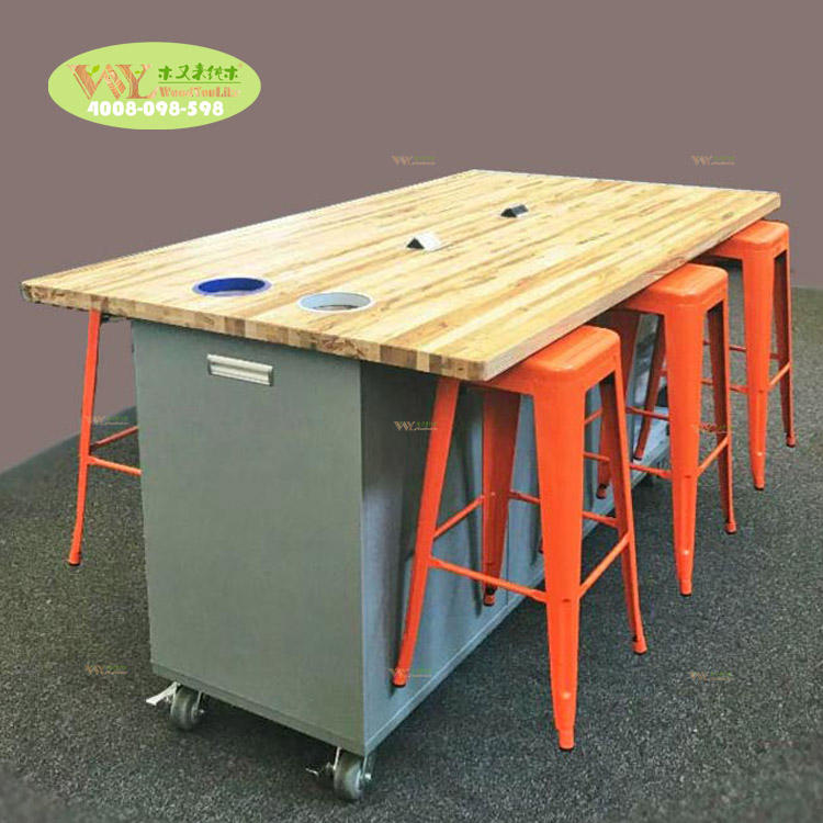 Table de travail Makerspace, mobilier éducatif, table de laboratoire en bois massif, bancs de studio, chaise métallique