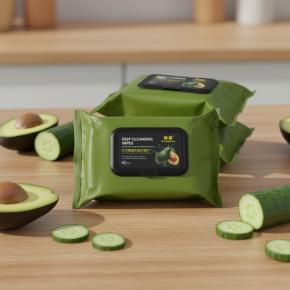 Serviette humide démaquillante à l'avocat, triple fonction pour les yeux, les lèvres et le visage